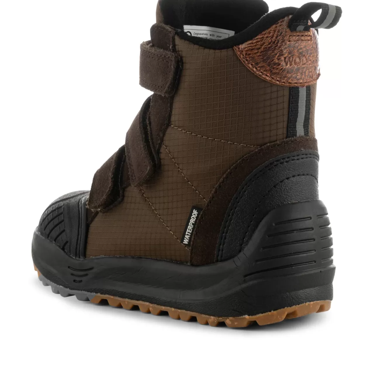 Erin er fremstillet i recycled nylon med et blødt inderfoer. I indersålen finder du et blødt underlag i skummaterialet EVA, som er både let og stødabsorberende, beklædt med det karakteristiske WODEN kork, som sikrer åndbarhed. Vores børnestyles er altid udstyret med et voksetillæg på indersålen, så du kan være sikker på dit barns korrekte størrelse. Vores ydersåle består af 65% naturgummi, 10% genbrugsgummi og 25% konventionelt produceret gummi. Det garanterer dit barn stabilitet og slidstyrke. Erin er waterproof.
