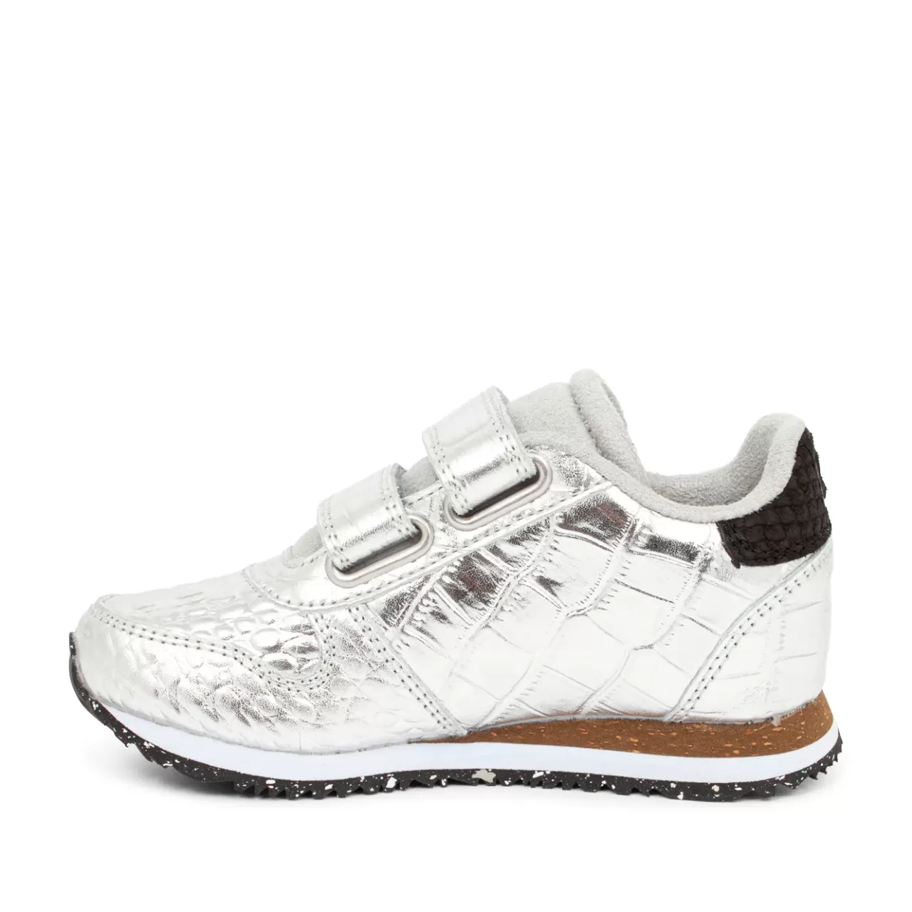 Smart og iøjefaldende børnesneaker med velcrostropper og fast hælkappe. Fine detaljer i fiskeskind og udført i kalve…