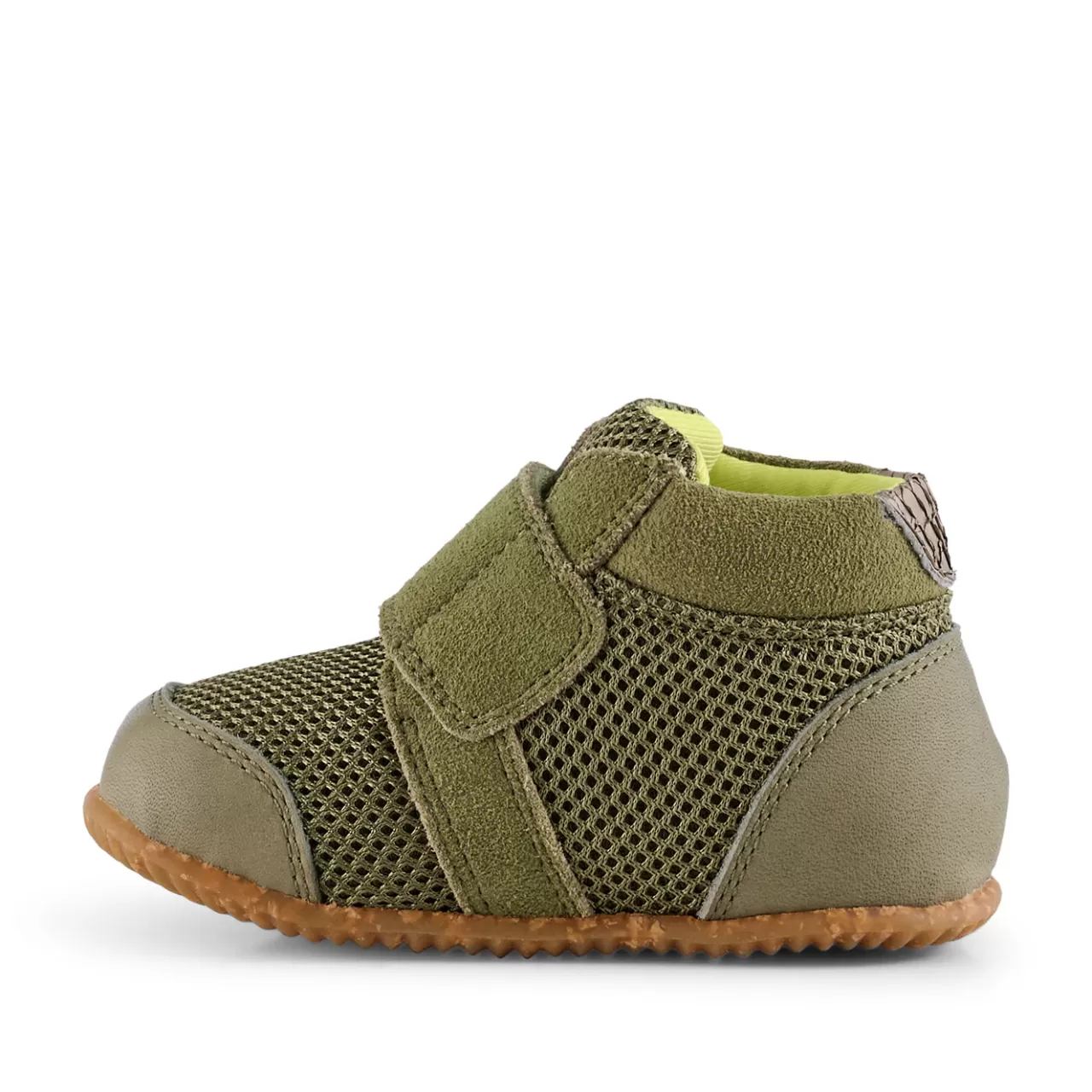 Frigg Mesh er den perfekte begynder-sko til dit barn. Den er lavet af læder og mesh og har Velcrolukning, der gør skoene lette af få af og på – og som sikrer, at de bliver på. Den bløde indersål er lavet af det lette og stødabsorberende skummateriale, EVA og er dækket af det karakteristiske WODEN-kork, som både sikrer komfort og åndbarhed.