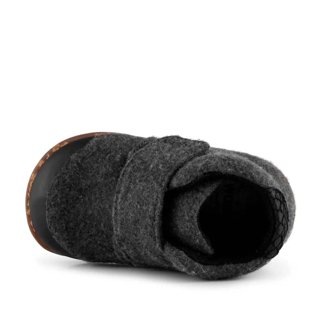 Vores Kim Felt babysko er en let og trendy begyndersko med velcrolukning i diskrete farver. Produceret i læder og filt med en blød hælkappe.
