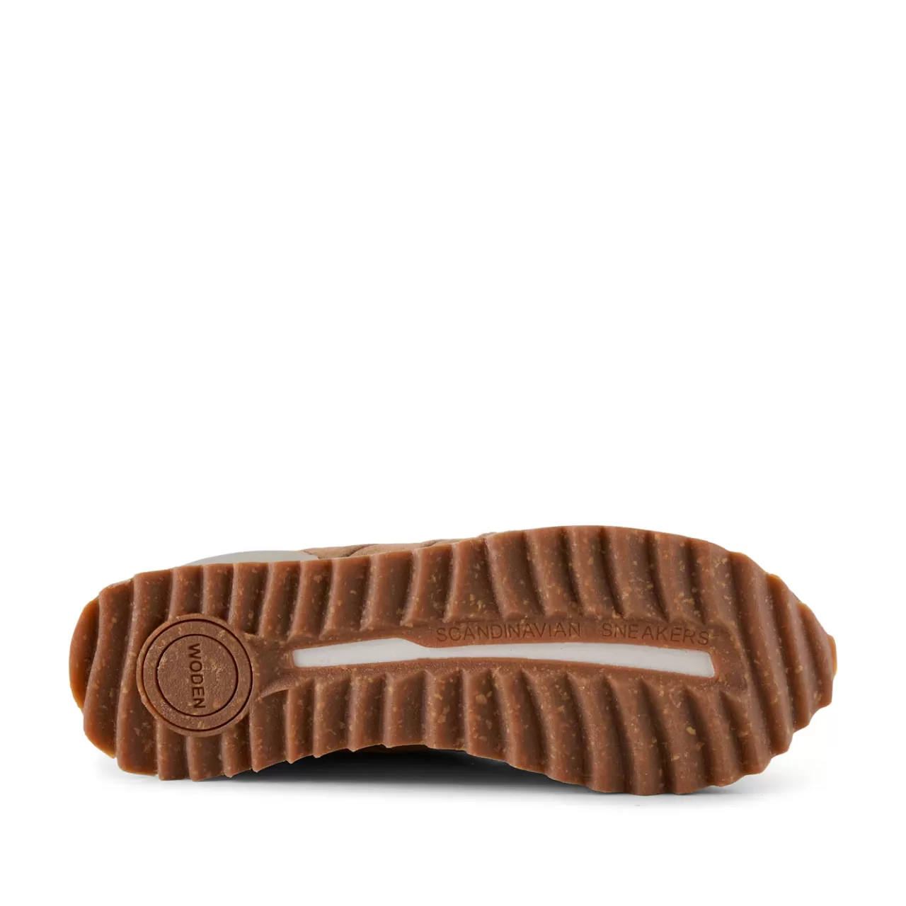 Unikt for WODEN sneakers er, at vi inkorporerer mindst 50 % genanvendt polyester fra PET-flasker i materialet. Blødt PU-skum bruges i indersålen, som ikke kun er let, men også stødabsorberende.