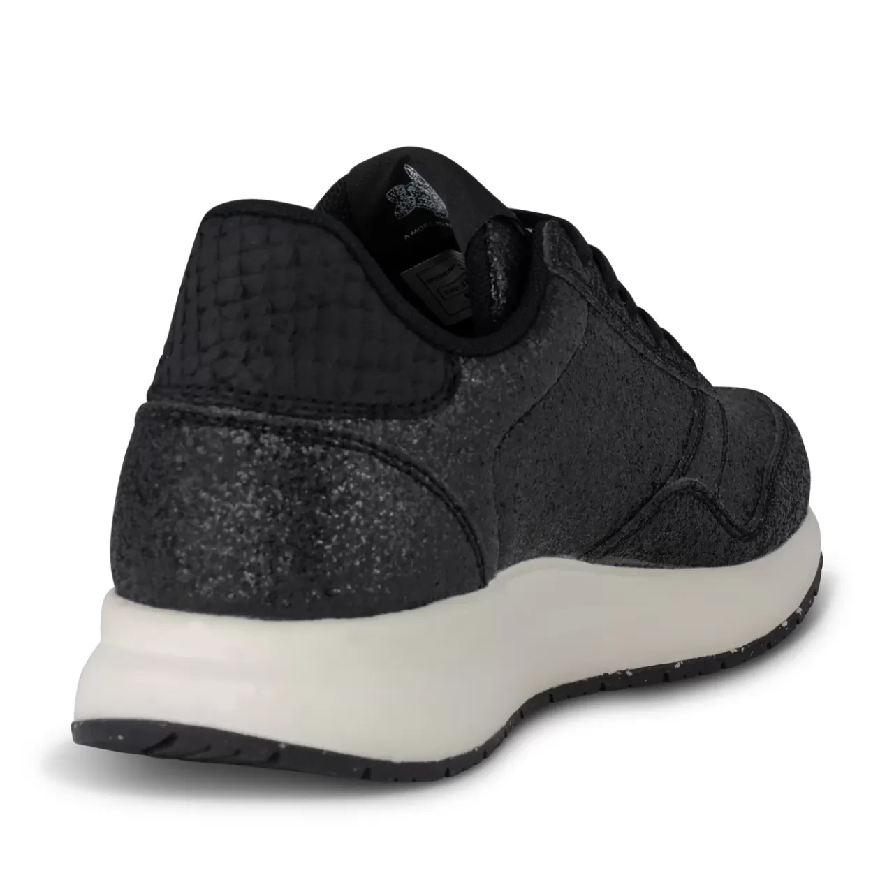Vi præsenterer Nicoline Glitter, en funklende sneaker, der får hvert skridt til at glimte. Fremstillet af åndbart glittertekstil med en skinnende finish, der fanger lyset der gør den perfekt til både afslappede og stilfulde oplevelser. Fremstillet af ASC-certificeret upcyclet fiskelæder, en let EVA-mellemsål og en ydersål af gummi med 10 % genanvendt indhold for holdbarhed. Forbedret med Wodens Natural Soft™-teknologi, en blød PU-indersål med kork og Air Flow System™ for at sikre åndbarhed og komfort hele dagen.
