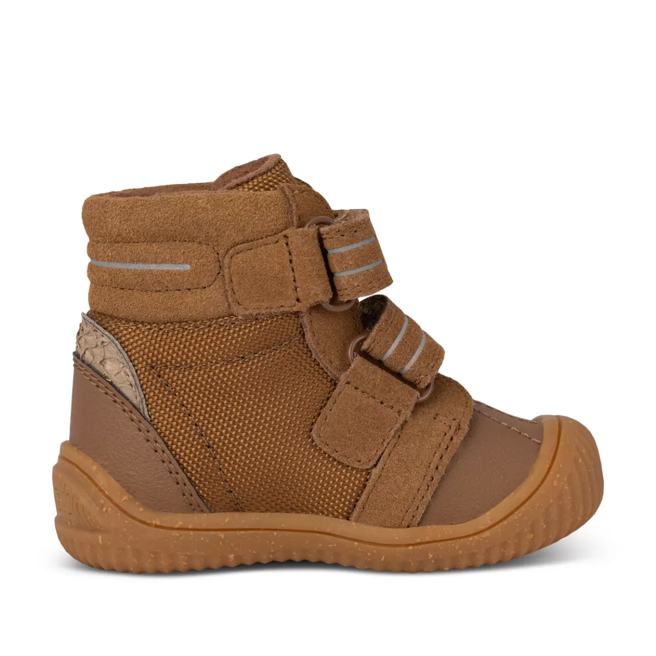 Tristan Boot er den optimale begynder babysko. Den er fremstillet af læder, er foret med genanvendte materialer, har refleks detaljer og velcrostropper, som gør den let at få af og på. I indersålen finder du et blødt underlag i skummaterialet EVA, som er både let og stødabsorberende. Indersålen er beklædt med det karakteristiske WODEN kork, som sikrer åndbarhed. Vores børnestyles er altid udstyret med et voksetillæg på indersålen, så du kan være sikker på dit barns korrekte størrelse.