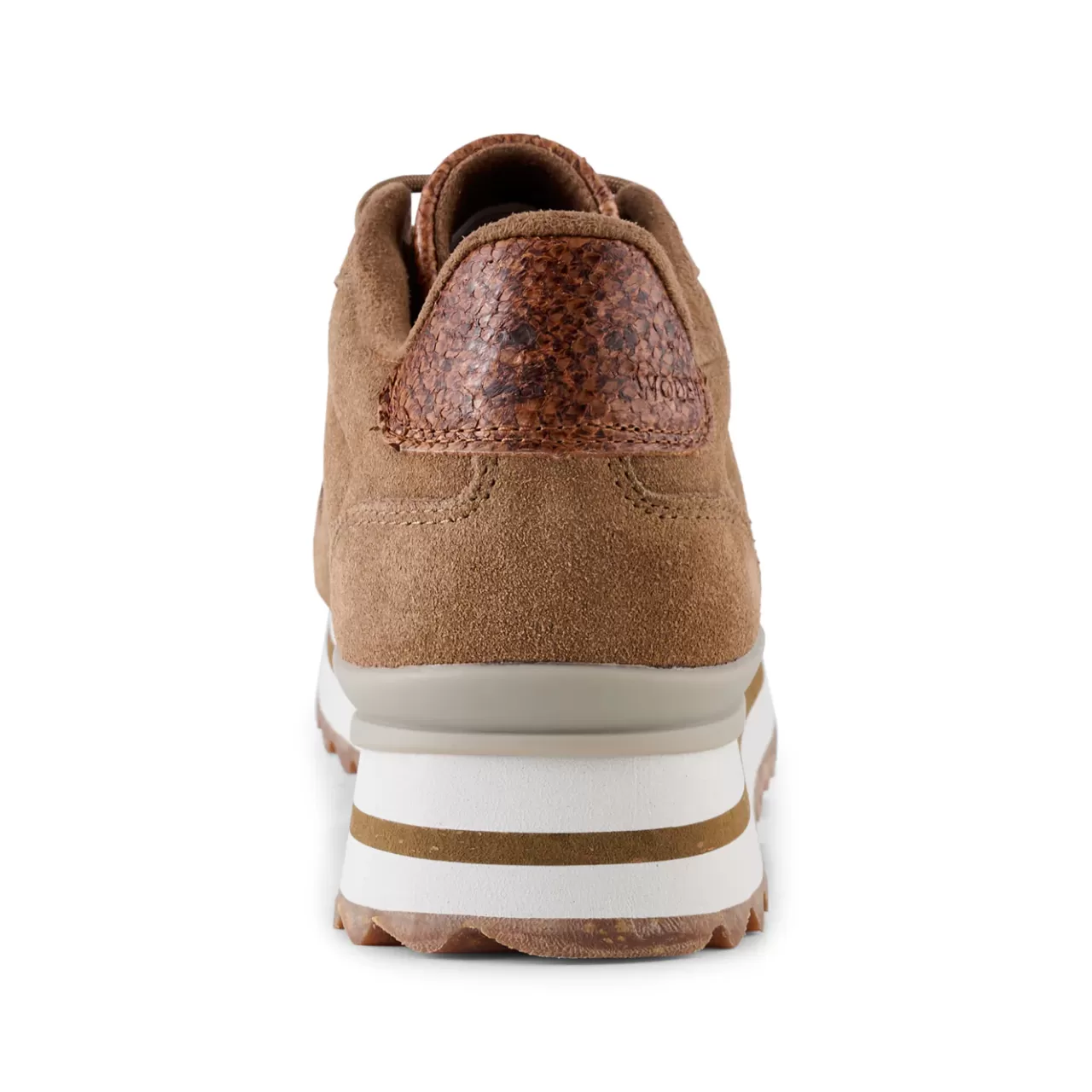 Nora III Suede Plateau er en moderne sneaker lavet i ruskind og tekstil med en hælstabilisator for ekstra støtte. Unikke fiskelæderdetaljer dekorerer hælen, sammen med en 3 cm pleateau sål.